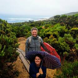 After a very hot and dry day yesterday it was raining today. We hiked through the Otway National Park and saw Koalas, Kangaroos, a waterfall and beautiful beaches.