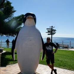 We continued on Tasmania's north coast to the East. On the way we passed one of these funny city names: Penguin🐧 We stopped to find some penguins and we did :) Further down the road we even found some dolphins and another beautiful beach. Amazing these beaches in Tassie! And yes we went for a swim!
