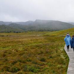 Nach dem schlechten Wetter von gestern hatten wir heute perfekte Bedingungen für eine lange Wanderung zum Cradle Mountain. Früh am Morgen ging es trotz einigen Regenwolken los. Von Ronny Creek über den Crater Lake zu Marions Lookout und dann weiter in Richtung Gipfel. Lediglich das letzte Stück zum Gipfel haben wir aufgrund von noch immer kräftigem Wind ausgelassen. Stattdessen ging es über den Hanson's Peak zurück ins Tal zum Dove Lake. Am Ende waren wir über 6 Stunden unterwegs. Eine richtig schöne Wanderung.