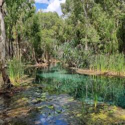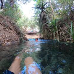 We made it to Mataranka. With every kilometer we were heading north it got hotter and hotter. We thought after being in Queensland for more than a year we are used to the heat by now but it is a different world. It is just hot and the next days will be even worse. But anyway, back to Mataranka: The village itself is a typical outback village with absolutely nothing to do or see. But we are here for the Thermal and Bitter Hot Springs. These springs have crystal clear waters and are amazing swimming holes with 30°C warm water. We stayed here for three nights after being on the road for so long last week.