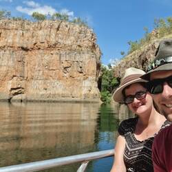We joined a boat tour through the Katherine Gorge this morning. Right now we are at the end of the dry season so there are 13 gorges and you always have to change boats and walk a few hundred meters to the next gorge. We only visited the first and second gorge today and it was really nice.