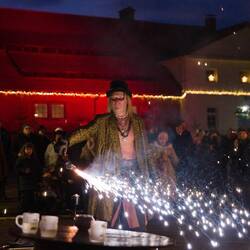 Im Gelände und in den ehemaligen Stallungen waren zahlreiche Stände und Angebote zu finden. Als es dunkel wurde gab es außerdem noch eine Feuershow.