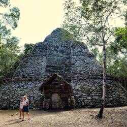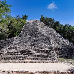 Auf dem Weg nach Chichén Itzá erreichen wir nach etwa 20 Minuten Fahrzeit die antike, weniger bekannte Stätte Coba. Die vermutlich um 200 n Chr. gegründete Stadt hatte ihren Höhepunkt zwischenLäs mer