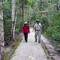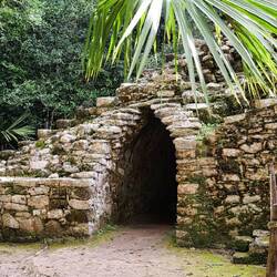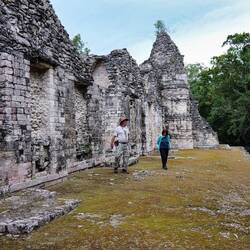 Etwa drei Stunden entfernt von Tohcok besichtigten wir die Maya-Ruinen von Chicanná in der Nähe der Stadt Xpujil im Bundesstaat Campeche. Sie liegen an der Ruta Puuc, einer Route, die mehrereLäs mer