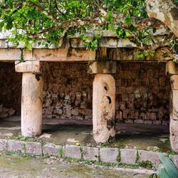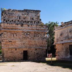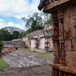 Im ebenfalls weniger bekannten Labná findet sich der wohl schönste Torbogen der Maya-Welt. Er verbindet zwei große Gebäudekomplexe und ist reich mit Reliefs und Symbolen verziert, auch wenn manLäs mer