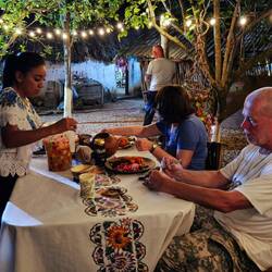 Am späteren Nachmittag geht es in ein Nachbardorf von Muna, nach Santa Elena. Dort treffen wir eine Maya-Familie, kochen und essen zusammen. Die Küche der heutigen Maya basiert auf traditionellenLäs mer