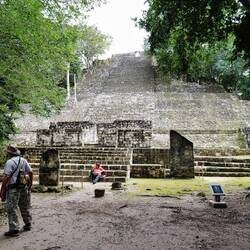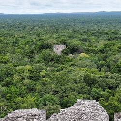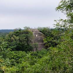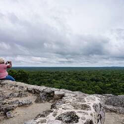 Wir sind bei den Ruinen von Calakmul, einst eine der größten Maya-Städte mit über 100.000 Bewohnern. Doch kommen nur um die 30.000 Besucher jährlich hier her, etwa so viel in zwei/drei Tagen inLäs mer