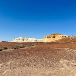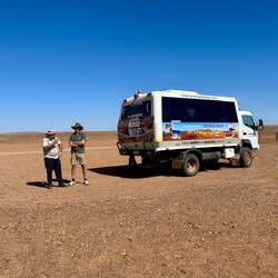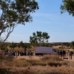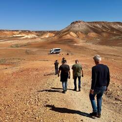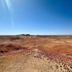 Weiter ging es etwa 20 Kilometer hinaus in die Wüste, ins Outback, eine extreme Umgebung. Man fühlt sich im Nichts, die Landschaft ist mondartig. Nichts als Sand und Steine, ab und zu weiße undRead more