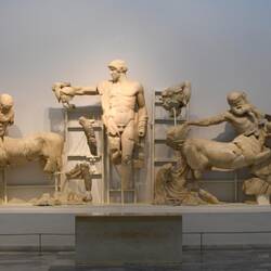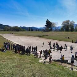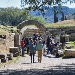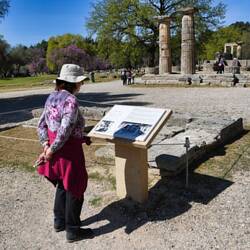 Donnerstag, 14. April, das Museum: Nach der rund fünf Kilometer langen Wanderung über die Ausgrabungsstätte ging es in das archäologische Museum Olympias. Hier werden die Geschichte, Kunst und Czytaj więcej