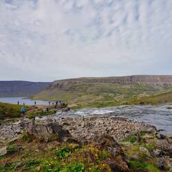 Nach einer Essenspause geht es weiter nördlich, nach knapp einer Stunde haben wir den schönsten Wasserfall der Westfjorde erreicht, den Dynjandi. Er stürzt über mehrere Stufen rund 100 m in die Czytaj więcej