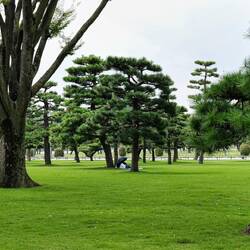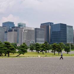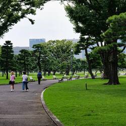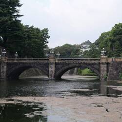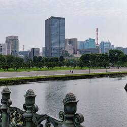 Weiter sind wir etwa einen Kilometer zum Kaiserpalast gelaufen. Inmitten eines grünen Areals lebt der Tennō, der japanische Kaiser mit seiner Familie. Der heutige Palast wurde 1888 auf dem Gelände der ehemaligen 1638 errichteten Burg Edo-jō des Tokugawa-Shogunats errichtet. Edo war der Name des alten Tokyo. Einst war die Burg eine der größten der Welt, es ist aber kaum mehr etwas erhalten. Im zweiten Weltkrieg wurde der Palast zerstört und bis 1968 in modernerem Stil wieder aufgebaut. Der größere Teil des 3,4 Quadratkilometer großen Areals ist ebenso wie der Wohnsitz des Kaiser nicht öffentlich zugänglich.