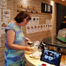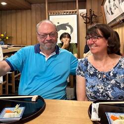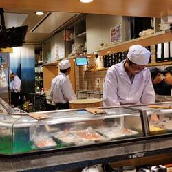 Zu Fuß sind wir dann in eine traditionelle Sushi Bar gegangen, und haben natürlich auch einiges gegessen. Das Besondere an dieser Art Restaurant. Man isst im Stehen, beliebt besonders bei vielbeschäftigten Angestellten, die keine Zeit haben, sich für eine Mahlzeit hinzusetzen. Man kann sich aber auch Zeit lassen, zumal die Sushi köstlich sind. Die werde ich in Deutschland vermissen, die überall beheizten Toilettensitze ebenfalls. Zu lange sollte man sich in dieser Art Restaurants aber keine Zeit lassen, warten draußen doch schon die nächsten Gäste auf freie Stehplätze an der Theke. An der auch das Essen frisch zubereitet wird.