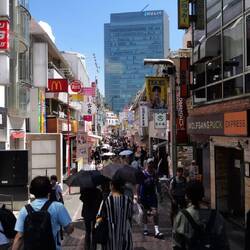 Unser nächster Besuch gilt den nahe gelegenen Stadtteilen Harajuku, ein lebendiges Viertel mit Boutiquen und Geschäften, beliebt vor allem bei jungen Japanern. Das Viertel gilt als eines der wichtigsten Modezentren Japans. Die hier vorwiegend angebotene, etwas punklastige Jugendmode gilt als eigener Stil, der Harajuku-Kei. Neben aufstrebenden trendigen Boutiquen finden sich alteingesessene Geschäfte wie das Dog. Hier soll auch von Mode-Ikonen wie Lady Gaga eingekauft werden.