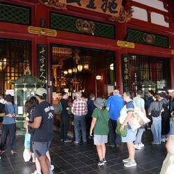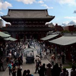 Im Stadtteil Asakusa findet sich Tokyos ältester buddhistischer Tempel, der Sensoji-Tempel. Er ist der meistbesuchte Tempel der Stadt. Hinein geht es durch das rote Kaminari-mon. Davor finden sich flankierend die Statuen von Fūjin, dem Gott des Windes, von Raijin, dem Donnergott sowie einem schön geschnitzten Drachen unter einer großen roten Laterne. Entlang des Weges finden sich unzählige Stände, verkauft wird alles Erdenkliche, von touristischem Kitsch bis hin zu Kunsthandwerk im Edo-Stil.