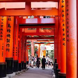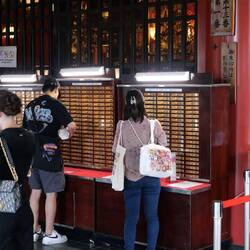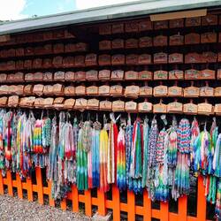 Im Schrein selbst sieht man betende Menschen, die Münzen in eine Opferbox werfen. Zuerst verbeugt man sich, um Respekt zu zeigen und wirft die Münze ein. Dann verbeugt sich zweimal und klatscht zweimal in die Hände – damit die Gottheit das Opfer auch wahrnimmt. Nun wünscht man sich etwas in Gedanken und schließ alles mit einer weiteren Verbeugung ab.