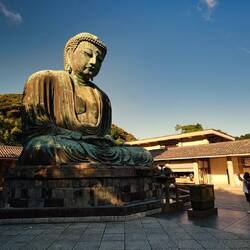 Die berühmteste Attraktion der Stadt ist sicherlich der 1252 errichtete große sitzende Buddha „Kamakura Daibutsu“. Der Daibutsu – übersetzt großer Buddha – von Kamakura ist das Symbol oder Wahrzeichen der Stadt und die am meisten besuchte Attraktion. Gefertigt ist sie aus Bronze und ohne Sockel 11,4 m hoch. Sie wiegt 121 Tonnen und stand einst in einer riesigen Halle. Die jedoch hat ein Tsunami 1498 weggespült, seitdem steht der Buddha im Freien. Nach der Buddha-Statue des Todai-ji in Nara ist der Daibutsu von Kamakura die zweitgrößte Buddha-Statue in Japan.