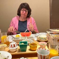 Angekommen in Takayama sind wir kurz nach 14 Uhr nach einer Fahrt durch eine wunderschöne Berglandschaft. Wir verbringen die kommenden zwei Nächte im Honjin Hiranyoka Kaochan, einem charmanten Ryokan, das traditionelle Atmosphäre mit modernem Komfort vereint. Das Ryokan bietet exzellente Gastfreundschaft, köstliche Mahlzeiten und entspannende heiße Quellen.