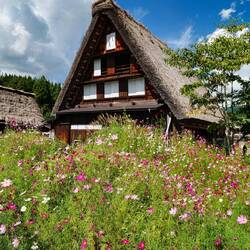 Wir machen uns mit dem Expressbus zum Dorf Shirakawago auf, seit 1995 Weltkulturerbe seiner einzigartigen Hauskonstruktionen wegen, den Gassho-zukuri-Bauernhäuser. Das bedeutet so viel „wie gebaut wie Hände im Gebet“. Der Baustil mit den steilen Strohdächern entwickelte sich über Generationen hinweg. Die Dächer müssen großen Schneemengen standhalten, sind ohne Nägel gebaut. Anders als bei Freilichtmuseen sind hier die meisten Häuser bewohnt und privat. Einige sind jedoch für Besucher offen. Beispielsweise das Nagase- oder das Wada-Haus. Letzteres ist ein Vermächtnis der Familie Wada, einst eine reiche Familie von Seidenhändlern. In den größeren Gassho lebten bis zu dreißig Personen unter einem Dach.