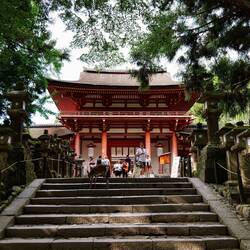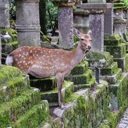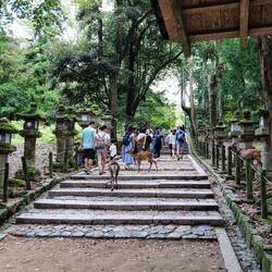 Beim Spaziergang durch den Nara-Park, der mit Tempeln und anderen historischen Denkmälern übersät ist, warten zahlreiche frei herumlaufende Hirsche und Rehe nur darauf, dass sie gefüttert werden. Es sollen um die 1000 sein und sie laufen mitten unter den Menschen herum, als würden sie dazugehören. Verschiedene Stände bieten Kekse zum Füttern der Tiere an, dann ist man sofort von Rehen umlagert. Besonders witzig, verbeugt man sich vor Ihnen, machen sie das gleiche und senken den Kopf. Manche der Tiere stehen am Wegesrand und verbeugen sich von allein an vorbeilaufenden Leuten, um einen der Kekse zu ergattern. Dennoch, es sind frei wildlebende Tiere inmitten des Parkes und der Stadt, besonders in der Brunftzeit heißt es vor den Hirschen mit ihrem Geweih auch aufzupassen. Wie niedlich die Rehe - besonders die Kleinen – auch sein mögen. Einer Überlieferung zufolge soll zum Schutz der neu gegründeten Stadt um 710 ein aus Westjapan herbeigerufener Kriegsgott auf einem Hirsch erschienen sein. Die Rehe gelten seitdem als heilig und leben hier mit den Menschen seit Jahrhunderten zusammen.