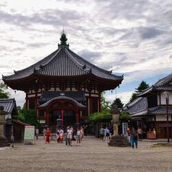 Der nahe gelegene Hokke-dô ist die älteste Struktur des Tôdai-ji, sie soll zwischen 740 und 747 erbaut worden sein. Das Bauwerk besteht aus einer Statuenhalle und einer Verehrungshalle.