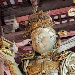 Wir starten unseren Besuch am Tõdai-ji-Tempel, den der dem Buddhismus tief ergebene Kaiser Shõmu zu Beginn des 8. Jahrhunderts errichten ließ. Die Einweihung um 752 herum soll mit Tausenden von Gästen aus China, Korea und Indien der alles überbietende Höhepunkt der gesamten buddhistischen Welt im 8. Jahrhundert gewesen sein. Der heutige Bau stammt aus der Edo Zeit um 1692, brannte der Tempel doch zweimal nieder. Einiges stammt aus früheren Zeiten, was die Feuer verschont hatten.