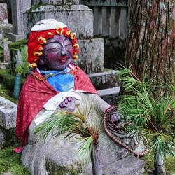 Unser erster Besuch gilt dem Okuno-in, den größten und bedeutendsten japanischen Friedhof. Hier ruhen hochrangige Persönlichkeiten der japanischen Geschichte: Kaiser, Shogune, Landesfürsten. Es findet sich auch das Mausoleum von Kobo Daishi. Laut einer Legende soll er immer noch in einem Zustand ewiger Meditation im Mausoleum verharren.