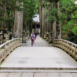 Die Ichi-no-hashi-Brücke kennzeichnet den offiziellen Eingang zum Tempelgelände und ist das Tor zwischen zwei Welten: der weltlichen und der geistlichen. Es wird erwartet, dass Besucher Kobo Daishi mit einer Verbeugung ihren Respekt erweisen, bevor sie das heilige Gelände des Okunoin betreten. Etwas weiter überquert man die Gobyo-no-hashi-Brücke und betritt nach einigen Metern das Innere des Tempels. Fotografieren ist hier natürlich nicht erwünscht.