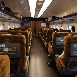 Wir verlassen Tokyo nach drei Tagen, es geht mit dem Hochgeschwindigkeitszug Shinkansen nach Nagoya und weiter mit einem Schnellzug nach Takayama, einer kleinen Stadt in der Hida-Alpenregion. Zugfahren in Japan ist etwas anders als in Deutschland. Die Züge sind schnell, sauber und pünktlich. Japans Schienennetz ist sehr gut ausgebaut, sowohl für den Nahverkehr als auch für die Durchquerung des Landes. Insofern bieten sich Reisen durch das Land mit dem Zug an. Besonders bekannt sind die Shinkansen, die mit Geschwindigkeiten von durchschnittlich 260 bis 320 km/h das Land durcheilen. Für die gesamte Strecke von etwa 480 km benötigen wir rund vier Stunden inklusive Umstieg in Nagoya und Wartezeit auf den dann von uns benutzen Eilzug. Zurzeit wird eine neue Hochgeschwindigkeitsstrecke zwischen Tokyo und Nagoya gebaut – geplante Fertigstellung 2027 – auf dem der Zug dann mit über 500 km/h verkehren soll. Für die 341 Kilometer benötigt er dann 40 Minuten.