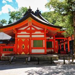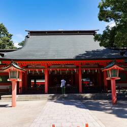 Der Ursprung des Schreins soll auf das Jahr 221 zurückgehen. Den heutigen Schrein baute Feudalherr Kuroda Nagamasa am Anfang der Edo Zeit um 1603 wieder auf, nachdem er mehrfach zerstört wurde. Er wurde seines alten Architekturstils zu einem wichtigen Kulturgut des Landes erklärt. Alle 25 Jahre wird der Schrein restauriert, um diese außergewöhnliche Architektur zu schützen.