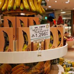 Zurück zur Food-Tour. In vielen dieser Einkaufszentren findet sich im ersten Untergeschoss Delikatessengeschäfte, Konditoreien und andere Essensstände. in Japan depachika genannt. Man muss auch erstmal auf die Idee kommen wir unser Guide Norry, bei einer Foodtour einen Supermarkt einzubeziehen. Doch das ist genial, denn hier findet sich wirklich alles, was die japanische Esskultur erklärt, und probieren kann man auch einiges. Besonders eine weitere Etage tiefer, wo sich Essensläden, Cafés oder auch zahlreiche Süßwarenläden befinden. In dem Supermarkt klapperten wir die Themen Tee, Fleisch, Fisch und Obst ab. Allein die Fischauswahl und -Fischtheken werfen einen fast um. Es gibt eigentlich alles, was man sich vorstellen kann oder auch nicht. Egal ob vom Wal oder getrocknete Seegurke, die erst mal mehrere Tage gewässert werden muss, bis sie genießbar ist. Nicht selten auch exklusive Waren, deren Preise einen blass werden lassen. Beispiele gefällig: Normale Bananen aus den Philippinen kosten vier Stück um die 2,40 Euro, original japanische – einzeln verpackt in Karton mit Sichtfenster, das Stück rund zehn Euro. Oder Zuckermelonen, in einem abgeschlossenen Schrank aufbewahrt, etwa 10 Zentimeter im Durchmesser, das Stück 205 Euro. Das Stück und nein, ich habe mich nicht verschrieben oder falsch umgerechnet. Da liegt nicht nur eine, sondern ein Dutzend. Oder eine einzelne Rispe mit Weintrauben, kosten gerade mal 170.- Euro. Derartiges Luxusobst dient gern als Geschenk, wandert eher nicht in Salate. Gut, das sind jetzt Extreme, aber deren gibt es hier nicht wenige. Über Preise bei manchen Fischspezialitäten oder hochwertigen Fleisches schweige ich mich aus.