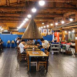 Wir treffen uns um 15.30 Uhr für eine längere Food-Tour durch die Stadt mit einem Guide an der Hakata-Station. Ist die Stadt doch für ihre Restaurants und Speisen bekannt, hat sogar eine eigene Touristeninfo für alles rund ums Essen. Mit dem Bus geht es zu unserem ersten kulinarischen Stopp, dem Yanagibashi Rengo Ichiba fish market mit rund 40 Läden. Dieser vor allem morgens belebte Markt ist bietet nahezu alles aus dem Meer und wird von den Einwohnern als „Speisekammer von Hakata“ geschätzt. Im Jahr 1916 wurde ein einzelner Stand, der frischen Fisch vom Ohama-Markt verkaufte, so populär, dass sich andere Stände um ihn scharten. Jetzt am Nachmittag ist schon einiges zu, die Läden bereiten sich auf den Feierabend vor. Dennoch erfahren wir einiges von den hier gehandelten Fischen, probieren auch das eine oder andere frittierte Stück.