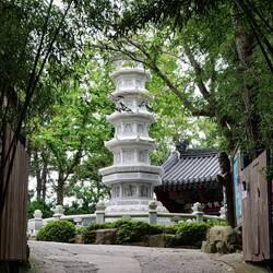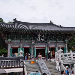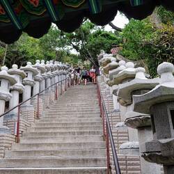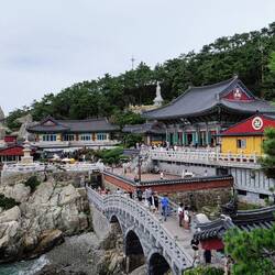 Der nächste Stopp war der nahe Busan gelegene buddhistische Haedong Yonggungsa-Tempel, der auf einer Klippe am Meer thront. Erbaut hat man ihn im Jahre 1376. Nach seiner Zerstörung im Jahr 1592 wurde er 1930 rekonstruiert, das Hauptheiligtum 1970. Seinen aktuellen Namen erhielt er 1974, als der Mönch Jeongam von einem weiß gekleideten Buddha träumte, der auf einem Drachen in den Himmel flog.