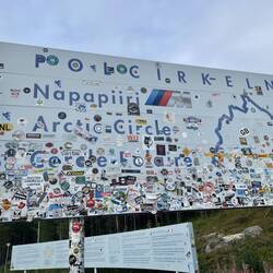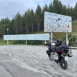 Dann ein Stopp bei einem Museum das ich besuchen will. Geschlossen, die ganze Saison. So ist es häufiger, wohl der wenigen Besucher wegen. Lohnt nicht. Gegen 17 Uhr überquere ich den nördlichen Polarkreis. Ich war hier der einzige und Laden, Infozentrum, Kaffee, alles geschlossen. Nun gut, 15 Minuten später bin ich in Jokkmokk, am Campingplatz. Ausgebucht. Und zum Zelten habe ich nach der Strecke und dem Wetter keine Lust. Das wars dann mit dem Samenzentrum am kommenden Morgen. Zumal auch hier vieles zu zu sein schien.