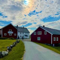 Früh aufgewacht, früh losgefahren. Natürlich bei Nieselregen, Wind und 11 ° Celsius. Heute habe ich nur rund 3 Fahrstunden vor und mehr Zeit für Kultur und die Stadt Trondheim. In Stiklestad, meinem ersten Stopp, findet sich ein großes Kulturzentrum und Freilichtmuseum. Der Ort ist vor allem durch die Schlacht bei Stiklestad bekannt. Damals, am 29. Juli 1030 wurde der norwegische Nationalheld Olav der Heilige in eben dieser Schlacht getötet. An der Stelle seines wahrscheinlichen Todes steht jetzt eine Kirche aus 1180. Dies war ein wichtiger Meilenstein für die Entwicklung des Christentums in Norwegen. Jährlich findet deswegen das St. Olav Drama und Festival statt, zudem werden Wikingerfeste und dergleichen veranstaltet. Leider ist die Saison schon vorbei, wie ich erfuhr. Man könne nur die Ausstellung (gegen Eintritt) und das Freigelände von außen (jetzt frei) besichtigen. Ab in die Ausstellung, bringt aber nicht viel, alles in Norwegisch. Also raus in Freie zu dem Freilichtmuseum. Hier finden sich Gebäude aus dem 18. und 19. Jahrhundert, aber auch der Nachbau eines Wikinger-Langhauses. Zu meiner Überraschung sind viele Gebäude offen, man kann innen alles besichtigen, aber niemand sonst ist da. Wäre in Deutschland undenkbar. Außer eine Schulklasse auf dem weitläufigen Gelände. Vielleicht sind ja deshalb einige Gebäude offen?