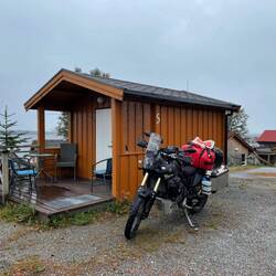 Bevor ich mir Trondheim mit dem Nidaros-Dom anschaue - hier ist König Olaf begraben - geht es auf einen Campingplatz vor Trondheim gelegen. Um nicht mit dem ganzen Gepäck in der doch größeren Stadt mit über 180.000 Einwohnern rumzugurken. Doch der ist geschlossen. Pünktlich fängt es zu regnen an, und zwar kräftig, das bleibt die nächsten Stunden so. Ein weiterer Campingplatz liegt 15 km hinter der Stadt, sagt meine Camping-App. Das Garmin-Navi entdeckt aber einen am Rande der Stadt. Also hin. Kurz und knapp: Nachdem es mich quer durch die Stadt gelotst hat - Stop and Go, Ampeln, Staus, selbst ein Kreisel in einem Tunnel mit drei Abfahrten ist dabei - bin ich dort, in einem guten Wohngebiet. Einen Campingplatz gab es hier noch nie. Also die 16 km raus, wieder quer durch die Stadt. Da beschloss ich, Trondheim ob des nervigen Verkehrs (bin ich nicht mehr gewohnt) und des Sauwetters auszulassen. Ich war ja im Februar 2020 schon hier, besuchte den Dom und das Altstadtviertel. Noch mal getankt und hin zum dritten Campingplatz. Die nette Dame in der Rezeption empfiehlt mir ein Gästehaus in der Nähe, denn hier wären alle Zimmer und Hütten belegt. Das ist das letzte was ich will, die ganzen nassen Sachen in ein Zimmer zu transportieren. Also weiter Richtung Molde. Auf der Strecke gibt es einige Campingplätze, den nächsten in rund 20 km. Hier wie gewohnt niemand an der Rezeption, aber eine Nummer die man anrufen kann.Fünf Minuten später ist ein netter älterer Herr hier. Eine Hütte mit Dusche hat er noch frei, nur eine etwas größere. Macht nichts. Nach über zwei Stunden Campingplatzsuche in strömenden Regen. Das Kennwort für das WLAN macht mich etwas stutzig: Glamping14. So war dann auch die Hütte mit Abstand die schönste und komfortabelste (und teuerste, aber angemessen), mit großem Wohnzimmer inklusive Küche mit Herd, Ofen, Kaffeemaschine, Wasserkocher, Kühlschrank..., und sogar SAT TV, wobei ich auch das hier nicht nutze. Zudem hat die Hütte ein schönes Bad und ein Schlafzimmer mit vier Betten. Auch ist eine überdachte Terrasse vorhanden, auf der ich die ganzen Sachen erst mal abtrocknen kann. Es regnet übrigens immer noch recht kräftig, soll auch so bleiben. Positiv, Motorradkombi und Schuhe sind absolut dicht, auch der Helm, nur die Handschuhe schwächeln etwas. Dafür habe ich aber Gummiüberzieher dabei, wenn es weiter so regnet, werde ich die wohl brauchen. Czytaj więcej