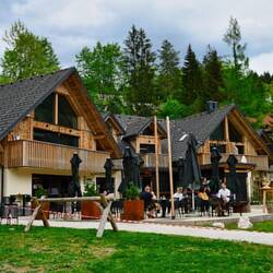 Wieder auf dem Moped fahre ich einem Hinweisschild Richtung Pokljuka nach, der Hochebene im Nationalpark, die ich morgens nicht erreichte. Nach einigen Irrungen und Wirrungen erreiche ich tatsächlich wieder den Nationalpark, nur nicht die Hochebene. Dafür geht es durch dunkle Wälder, Bärenland. Ich sehe aber keinen der Gesellen, sie scheuen Menschen und Fahrzeuge sowieso. Dennoch, die Berge hoch und runter, wie Achterbahnfahren, nur dass man selbst steuert. Wieder den Berg runter geht es einen Fluss entlang zum See Bohinjska jezero. Auf dem Wasser zahlreichen Kanufahrer, StandUp-Paddler und auch Badende. Man sollte seine Badesachen dabei haben, liegen im Hotel. Zumal das Wetter mitspielt: Sonne und 28 Grad, nur die Wetterapp prognostizierte für heute eine Regenwahrscheinlichkeit von 90 Prozent. Tatsächlich hatte es mal ganz kurz oben auf den Bergen geregnet, das war es aber dann schon.