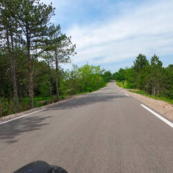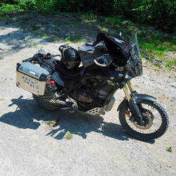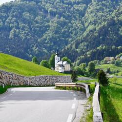 Bei Bovec verlasse ich die mir bekannte Route und biege nach Osten ab. Weiter entlang der Soča. Es geht hinauf auf den Vršič, den höchsten Gebirgspass Sloweniens. Die Straße hinauf, die hat Gott extra für Motorradfahrer geschaffen. Genau 50 Spitzkehren sind es auf den beiden Seiten des Passes zusammen gezählt, und unzählige enge, 90 Grad-Kurven. Es geht hinauf auf 1611 m und wieder hinunter. Ein paar Autos sind auch auf der Passstraße unterwegs, machen aber schnell Platz, lassen einen gern vorbei. Ein kurzer Stopp an einem Aussichtspunkt, dann ist der Pass schon erreicht. Kein Problem, sofern man Spitzkehren beherrscht. Oben am Pass steht ein kleiner Souvenirshop, Kaffe gibt es aber keinen. Dafür bekomme ich von anderen Motorradfahrern die Antwort auf meine nichtgestellte Frage, warum ich eigentlich nahezu der Einzige war, der den Pass von Bovec aus fährt. Andersrum, sprich mir entgegen, sah es anders aus. Da waren und sind einige unterwegs. Der Grund, die Spitzkehren mit Kopfsteinpflaster finden sich nur auf der Seite von Kranskja Gora aus und sie lassen sich bergauf deutlich besser fahren, so heißt es... Zumal nicht jeder Stein im Pflaster dort ist, wo er sein sollte und Sand von den Felshängen auch noch zu finden ist. Vorab, auch bergab stellten die – noch trockenen Pflasterstein-Spitzkehren auch kein Problem dar.