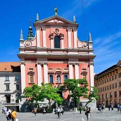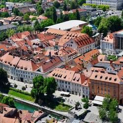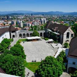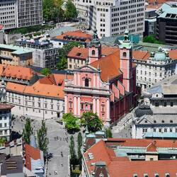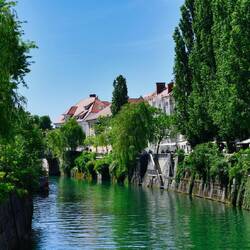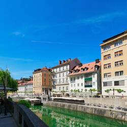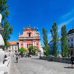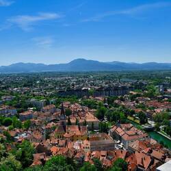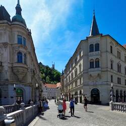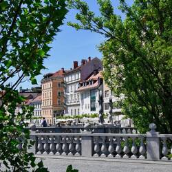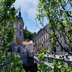 Knapp eine Stunde dauerte die Fahrt auf der Autobahn am Morgen nach Ljubjana, der Hauptstadt Sloweniens. Sie ist wirtschaftliches und kulturelles Zentrum des Landes, dennoch überschaubar mit ihren rund 290.000 Einwohnern. Es ist eine der kleinsten Hauptstädte Europas, was nicht schlecht ist. Und, so mein Eindruck, sie ist sehr lebhaft und grün. Im Zentrum herrscht südländisches Flair, unzählige Restaurants und Kaffee haben ihre Sitzplätze im Freien entlang des Flusses Ljubljanica. Ich halte mich im Zentrum und der Altstadt auf, schaue mir den Marktplatz an, wandele die berühmte Drachenbrücke entlang, die aber etwas enttäuscht und schlendere über den zentralen Platz der Stadt, den Prešernov Trg. Hier steht die dominante Franziskanerkirche und besonders beeindruckend ist die dreiteilige Tromostovje-Brücke. Fotomotive zuhauf. Nach zwei Stunden mache ich mich wieder auf den Weg zum Motorrad und hoch zur Burg, es ist heute in der Motorradkluft einfach zu heiß, um länger durch die Stadt zu bummeln.