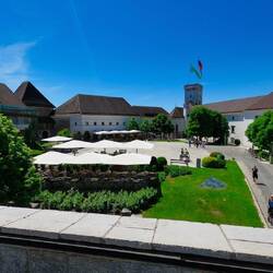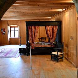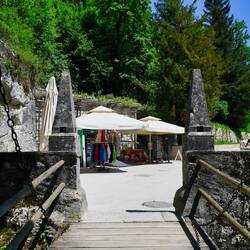 Die auf einem weißen Felsen hoch über einem smaragdfarbenen See thronende Burg geht auf das Jahr 1004 zurück und ist eine der ältesten Sloweniens. Ihre heutige Form und Aussehen erhielt sie durch die Renovierung nach einem Erdbeben im Jahr 1511. Charakteristisch für die Burg ist die Doppelstruktur: innen der befestigte zentrale Teil für die feudalen Herren, außen der Teil mit Mauern und Räumlichkeiten für die Diener. Auf der Burg gibt es u. a. ein Kaffee mit einer wunderschönen Terrasse mit Blick über die Bergwelt und den See, allein dafür lohnen die 13 € Eintritt. Weiter finden sich ein gehobenes Restaurant, ein Museum und ein Weinverkauf im alten Weinkeller sowie eine Buchdruckermanufaktur. Und zwei Souvenirshops. Der Besuch lohnt.