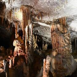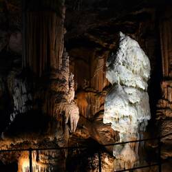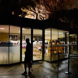 Erforscht sind 24, besuchen kann man bei der normalen Tour rund 5 Kilometer, wobei man etwa 3,5 davon in einem Zug zurücklegt. Ich habe schon sehr viele Höhlen besucht, diese jedoch gehört sicherlich mit zu den Sehenswertesten, für mich bis dato nur mit der Mammoth Cave in den USA vergleichbar. Das System besteht aus drei Hauptebenen, in der untersten fließt heute noch der Fluss Pivka, der dieses System schuf. Prächtige Tropfsteinskulpturen wechseln sich mit großen Hallen ab, wie der weiße Saal, der Spaghetti-Saal und der rote Saal. Der Name ist dabei Programm. Manche der Stalagtiten sind reinweiß, manche gelblich oder rötlich. Im größten Saal, der Konzerthalle, sollen zehntausend Menschen passen. Es gibt Führungen in Englisch, Italienisch, Slowenisch und Deutsch, ebenfalls zu jeder Stunde. In der Höhle verlaufen sich die Gruppen aber. Bevor es mit dem Zug wieder rausgeht, darf natürlich ein Souvenirshop nicht fehlen. Und außerhalb gibt es mehrere Kaffees, Restaurants ein großes Hotel, einen Parkt und ein Vivarium, das sich mit der Tierwelt in der Höhle befasst. Alles sehr sauber und schön angelegt.