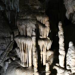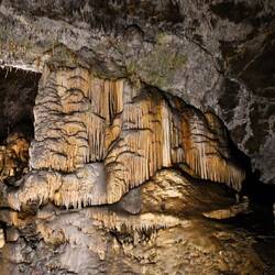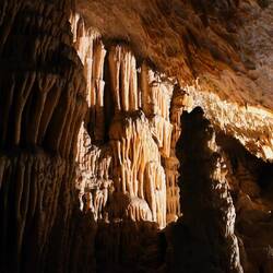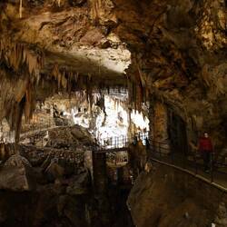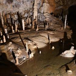 Eines davon ist der Grottenolm, in einem Aquarium am Ende der Tour kann man einige sehen. Die bis zu 30 cm großen Schwanzlurche sind weiß, blind und können um die 100 Jahre alt werden. Und kommen bis zu zwölf Jahre ohne Nahrung aus. Insgesamt finden sich in den Höhlen um die 150 verschiedene Tierarten. Doch lassen wir nun die Bilder sprechen.Baca lagi