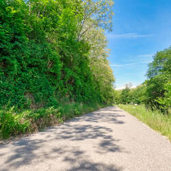 Ein erstes kurzes Teilstück durch Wald und Wiesen ist vielversprechend. Nach kurzer Fahrt im Park findet sich am Weg eine Ruine mit einem Mahnmal. Das macht neugierig. Eine traurige Geschichte verbirgt sich dahinter. Als Vergeltung für den Tod zweier Soldaten durch Partisanen brannten deutsche Soldaten im September 1944 alle Häuser des Weilers nieder und töteten die 24 Bewohner. Das jüngste Opfer war elf Monate alt, das älteste 89 Jahre.