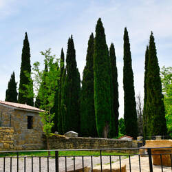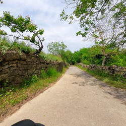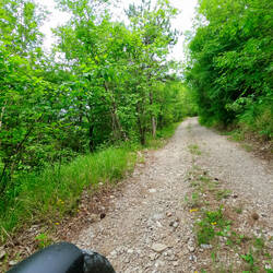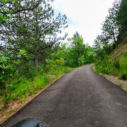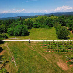 Wieder los gleich Richtung Landesinnere, der Küstenstreifen Sloweniens umfasst gerade mal etwa 50 km. Bei der Anfahrt heute morgen war ich nur einige Kilometer vom italienischen Triest entfernt und jetzt ist es nicht weit zur kroatischen Grenze. Es geht an Weinstöcken und Olivenhainen entlang auf kleinen Sträßchen, teils geteert, teils auf Schotter. Die Dörfer abseits der größeren Routen scheinen ausgestorben. Auf einmal, mitten in der Pampa, ist die Straße gesperrt. Der letzte Abzweig liegt gut acht Kilometer zurück, also umgedreht und eine Umfahrung gesucht. Denn eigentlich wollte ich hier weiter. Mein Navi führt mich dann über teils abenteuerliche Pisten, mit meinen bescheidenen Offroad-Kenntnissen komme ich fast an meine Grenzen. Schmale, sehr steile Pisten mit Haarnadelkurven, grober Schotter oder Steine, meterhohes Gras, und das kilometerlang. Aber irgendwann ist es geschafft, ohne Sturz. Mit der Zeit wird man immer sicherer, was gefährlich ist. Denn jede kleinste Unaufmerksamkeit wird sofort bestraft. Derartige Strecken begleiten mich den Tag immer wieder, bei manchen hat man den Eindruck, dass hier schon jahrelang niemand mehr entlang gefahren ist, wahrscheinlich nicht mal gelaufen. So komme ich aber an einzelne Gehöfte, die wirklich noch in der Vergangenheit stehengeblieben sind. Die auch nur über solche Wege erreichbar sind.