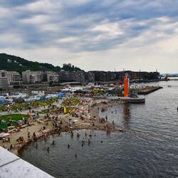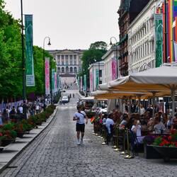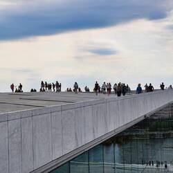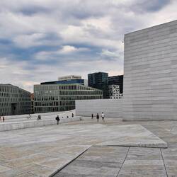 Rund eineinhalb Tage blieben uns durch die Umbucherei jetzt für Oslo. Der gestrige Tag bei wunderbarem Sonnenschein, heute bei zeitweise stärkerem Platzregen. So wie das Wetter in Norwegen halt ist. Also am Samstag einen Bummel durch die Stadt gemacht, die wichtigsten Sehenswürdigkeiten mitgenommen. Sprich, als erstes ging es zur Oper. Das Opernhaus ist aus weißem Marmor gebaut, die eckige Fassade scheint sich aus dem Wasser zu erheben. Genial, man kann auf das riesige Dach steigen - oder mit eRollern auch befahren - was einige machten - und hat dann von oben einen wunderbaren Blick über Oslo und den Fjord. Auf dem Weg dorthin lag auch die Osloer Kathedrale und das Parlament sowie einige weitere Sehenswürdigkeiten.