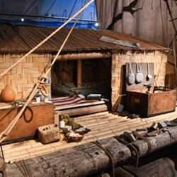 Das ist auch das Kon-Tiki-Museum. Hier finden sich das originale Kon-Tiki-Floß aus Balsaholz und das Papyrus-Boot Ra II. Mit der Kon-Tiki überquerte Thor Heyerdahl 1947 den Pazifik auf dem Floß von Lima, Peru bis nach Polynesien. Er war 101 Tage unterwegs und legte etwa 7000 km zurück. Ziel war der Beweis, dass die Besiedlung Polynesiens von Südamerika aus erfolgen konnte, und zwar vor der Zeit der Inka.