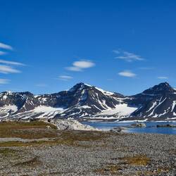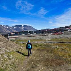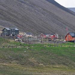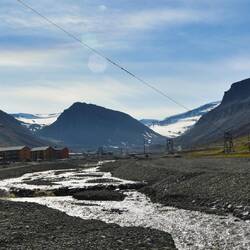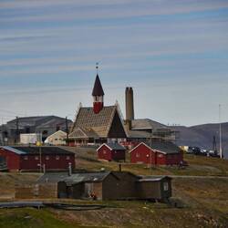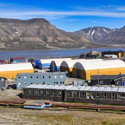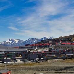 Wir sind am frühen Nachmittag in Spitzbergen angekommen, in der ‚Hauptstadt` Longyearbyen. Gesprochen Lung-yer-bin. Man fühlt sich wie auf einem nördlichen Außenposten der Menschheit. Eine karge, baumlose, leicht bergige Landschaft, Schnee und Gletscher ringsherum, der Boden ist tiefgefroren, Tagestemperatur derzeit rund 5 Grad Celsius - Hochsommer. Die Gebäude und Lagerplätze verstärken den Eindruck noch. Die Stadt ist nur rund 1310 Kilometer vom Nordpol entfernt, mithin die nördlichste Siedlung der Welt. Derzeit scheint rund um die Uhr die Sonne, vom 26. Oktober bis 15. Februar bleibt sie dagegen vollständig unter dem Horizont, es herrscht fortwährend schwarze Nacht.