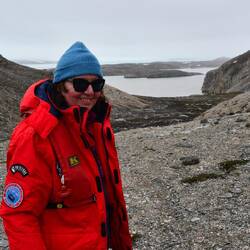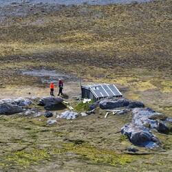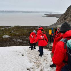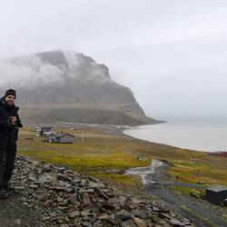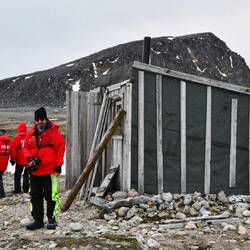 Doch der Expeditionsleiter entschied, nachdem sie das Gelände vom Boot aus sondiert hatten und mit der Drohne aus der Luft kontrollierten, dass man doch anlanden könnte, Boot für Boot und recht kurz. Also raus mit fünf bewaffneten Crew-Mitlieden, die das Gelände absicherten. Der Bär schlief noch und wir waren gegen den Wind, so dass er keine Witterung aufnehmen konnte. Also raus aus dem Boot und hin zu dem Denkmal. So gehören wir nun zu den wenigen Menschen, die an beiden Orten waren, Ort waren, der für Svalbard - Spitzbergen - eine besondere historische Bedeutung hat.Läs mer