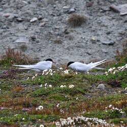 An Vögeln recht häufig sieht man die Dreizehenmöve und die Eiderenten. Seltener dagegen ist die Prachteiderente, von der wir auch ein Exemplar sahen. Sehr aggressiv sind die Küstenseeschwalben, die gehen gerne sofort auf Attacke. Hier heißt es in der Nähe des Autos zu bleiben. Auch einen einzelnen Papageientaucher entdecken wir, an ungewöhnlicher Stelle. Der Guide vermutet das er krank ist und meldet ihn und den Ort einer Behörde. Denn es besteht das Risiko, dass der Vogel an Vogelgrippe erkrankt ist. Am 24. Juni ist sie erstmals in der Arktis nachgewiesen worden. Forscher hatten schon damit gerechnet, dass das Virus auch in Spitzbergen ankommen würde, da es einen großen Ausbruch im Frühjahr unter Gänsen in Schottland gab, und die ziehen zum Brüten nach Svalbard. Das Virus ist für Vögel hoch ansteckend und tödlich. Man rechnet für die großen Vogelkolonien in Spitzbergen mit möglicherweise fatalen Folgen. Deswegen sollen Funde toter oder kranker Vögel gemeldet werden.