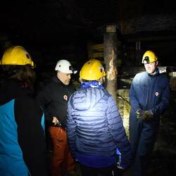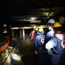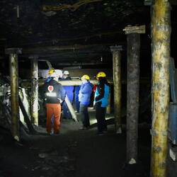 Die rund 3-stündige Tour lohnt, und wir haben einen wunderbaren Guide, der voll engagiert ist und wirklich viel erzählen kann. Auch Geschichten aus der damaligen Zeit. Die Arbeit war extrem schwer, unter Tage herrscht Permafrost, in den Gängen so um die minus zwei Grad, die Schichten dauerten acht Stunden und man arbeitete mit schwerem Gerät (alles Handarbeit) in Flözen von um die 50 / 60 cm Höhe. Also den ganzen Tag liegend und kriechend. Ungefährlich war es auch nicht. Dennoch blieben nicht wenige ihr Leben lang dieser Arbeit treu, der sehr guten Bezahlung wegen, geringer Steuern und der - nicht selten fast familiären Kameradschaft unter den Bergleuten.