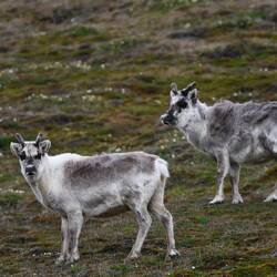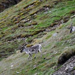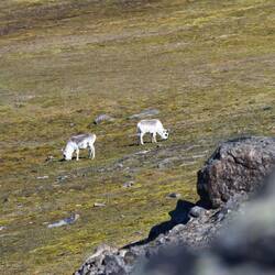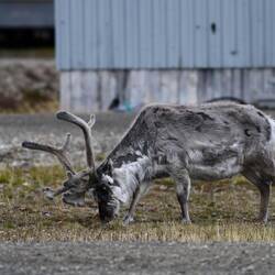 Wir sind mit einem Guide privat unterwegs, um die Umgebung von Spitzbergen mit dem Auto zu erkunden. In erster Linie steht Vogelbeobachtung auf dem Programm, aber auch Rentiere kreuzen unseren Weg. Die hier sind kleiner und gedrungener als die vom skandinavischen Festland und leben wild. Halten sich aber gern in der Umgebung von Siedlungen auf, da darf nicht gejagt werden.